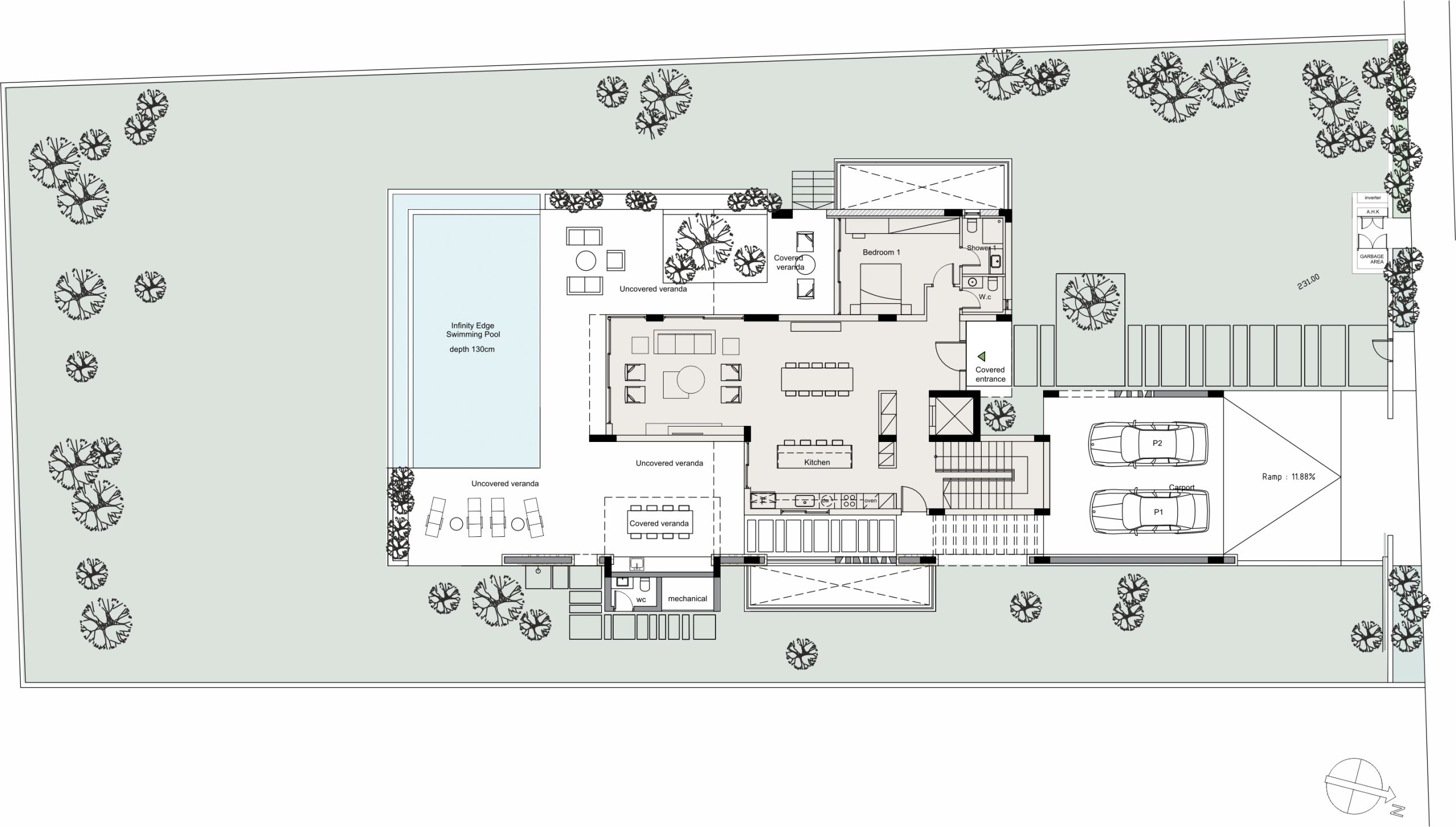 - Covered parking space