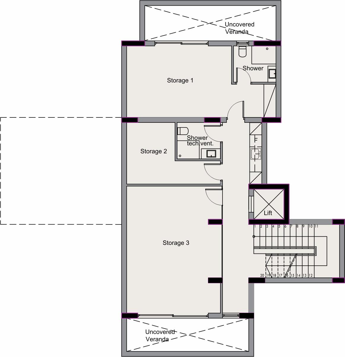 Uncovered veranda: 96 m2